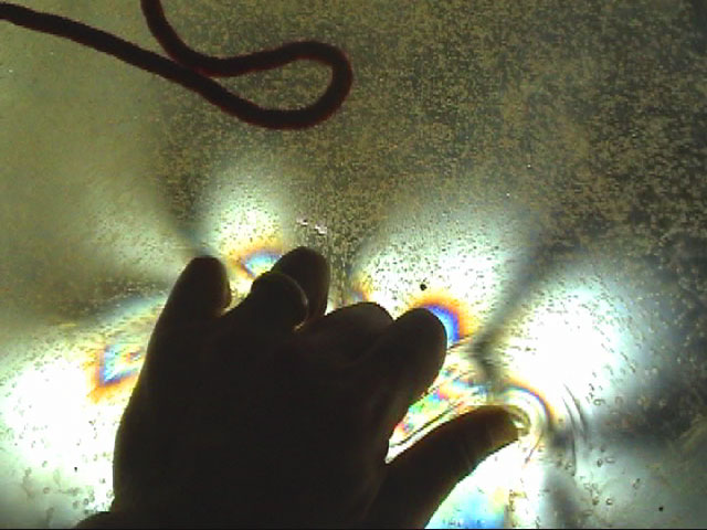 The optical effect, viewed through a polarizing filter. The effect mimics the control mechanism used in LCD displays.